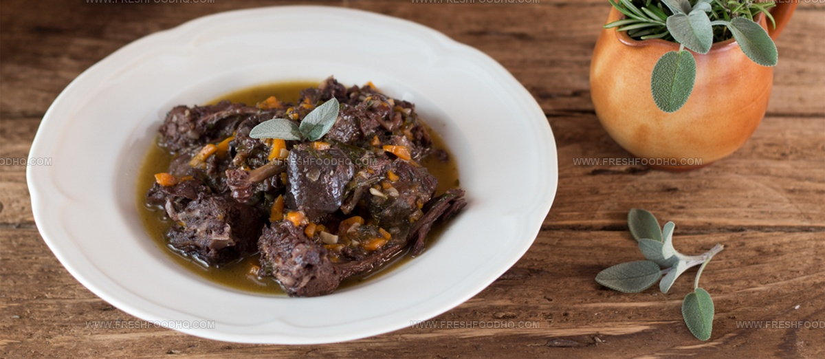 Wild boar stew bursts from Tuscany's rustic kitchens with intense game meat slowly simmered in robust red wine and aromatic herbs.