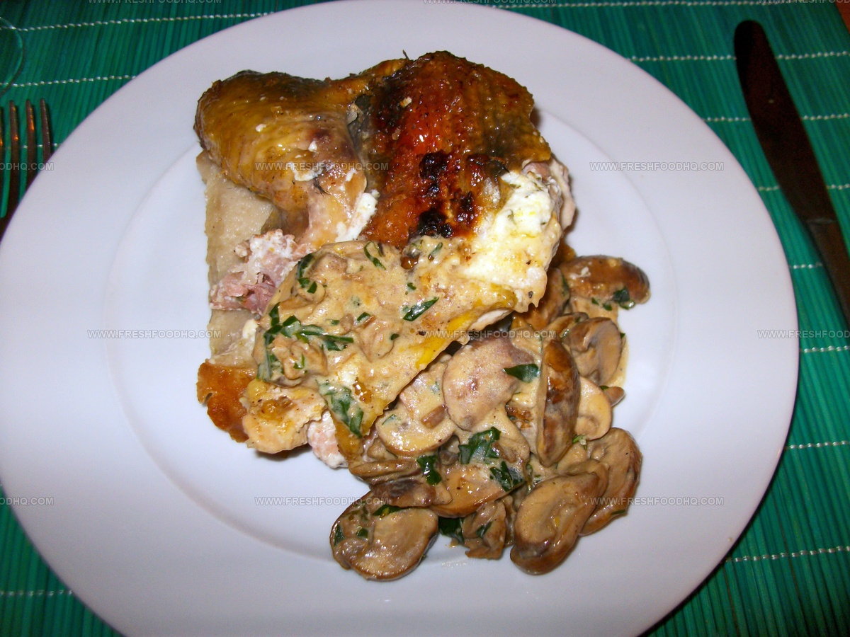 Southern Italian kitchens carefully season the fowl with salt and pepper before nestling the rich cheese inside its cavity.