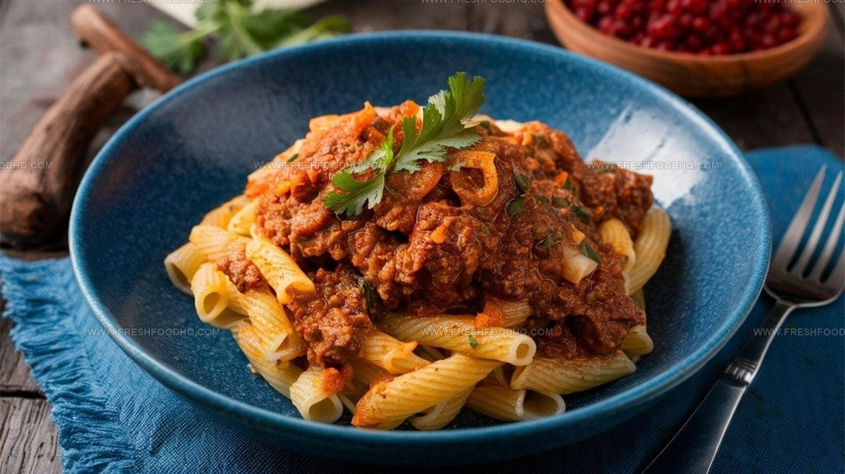 Slow-cooking techniques ensure the meat becomes tender and absorbs the multilayered sauce's intense flavors.