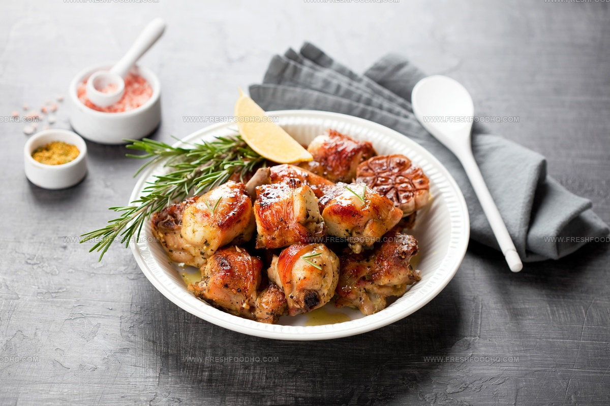 Small bone-in meat chunks absorb aromatic herbs like rosemary and thyme during cooking.