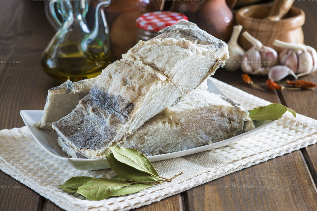 Preparation typically involves soaking the salt-cured cod in water before cooking through methods like grilling, frying, braising, or baking.