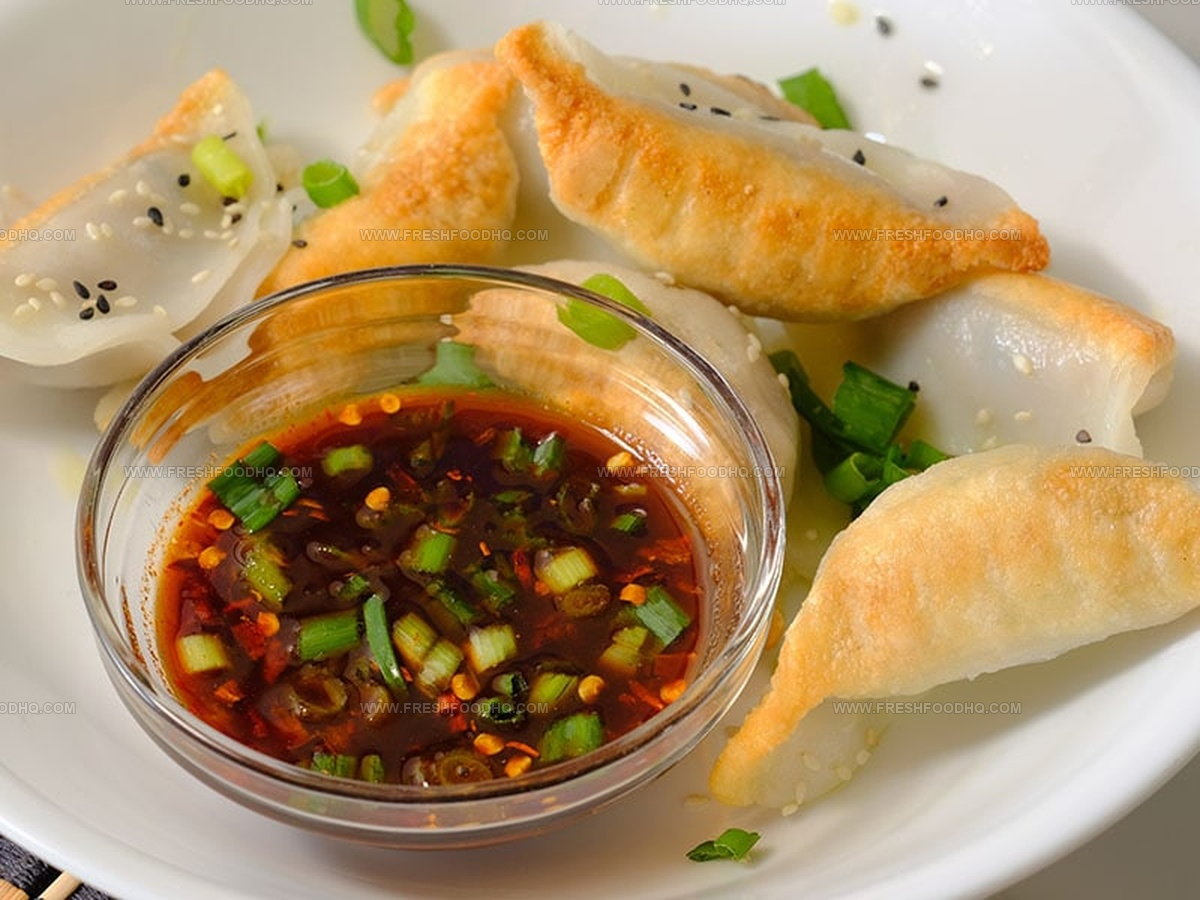 Traditional potstickers get their name from the unique pan-frying technique that creates a crispy bottom.