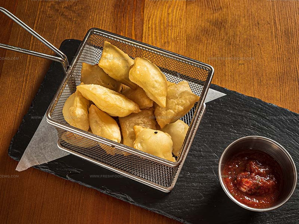 Dough Thickness | Skin thickness varies; can be thick or thin | Skin is always thin to allow crispness when fried |