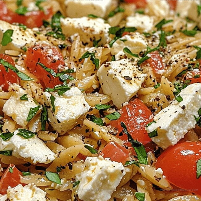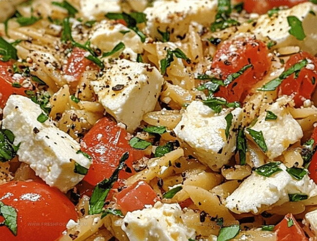 Greek-inspired Baked Feta Orzo delivers Mediterranean comfort with creamy cheese, juicy tomatoes, and herbaceous flavors. Fragrant herbs and golden-brown edges promise a delightful culinary journey you’ll savor until the last comforting bite.