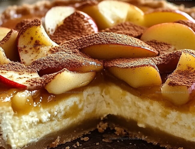 Creamy cheesecake meets classic apple pie in a dessert that promises pure indulgence.