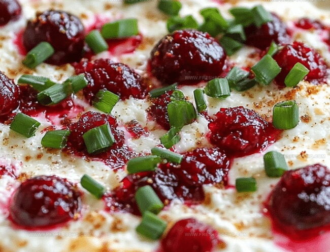 Tangy cranberries dance perfectly with rich, creamy cheese, creating a stunning contrast of flavors.