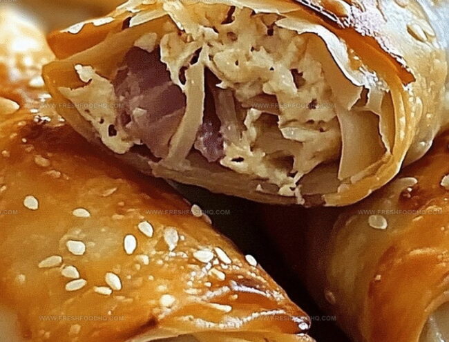 Crispy Reuben egg rolls blend classic deli flavors into a delightful handheld snack. Corned beef, sauerkraut, and Swiss cheese wrapped in golden-brown wrappers deliver a satisfying crunch you’ll crave again and again.