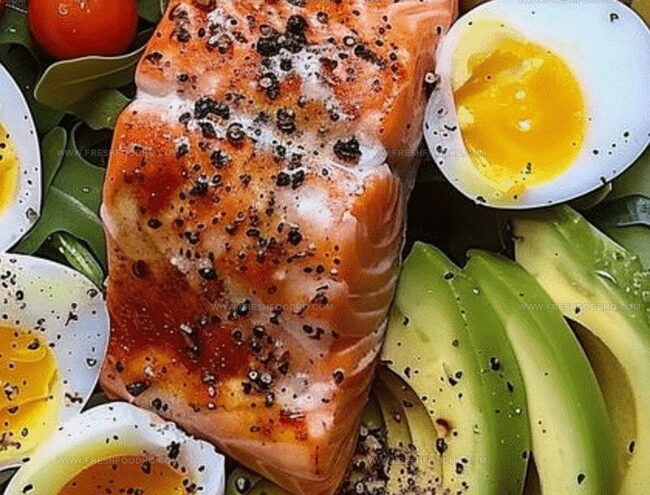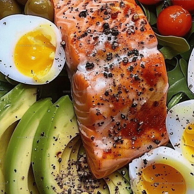Salmon Bowl Bliss brings Mediterranean flavors dancing across your plate with fresh, zesty ingredients. Succulent salmon nestles among colorful vegetables, promising a delightful meal that refreshes you from first bite to last.