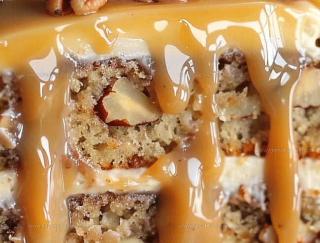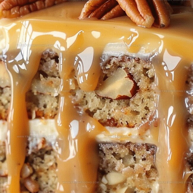 Rich banana layers dancing with caramel pecans create a decadent dessert adventure you’ll want to savor immediately.