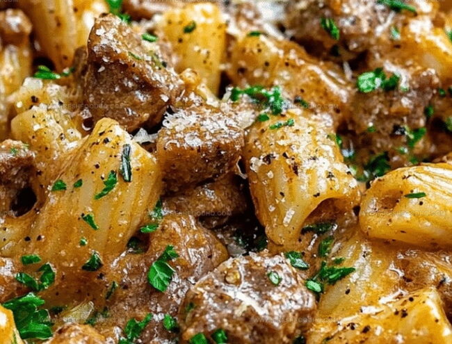 Hearty Beef Pasta in a Creamy Garlic Sauce Recipe