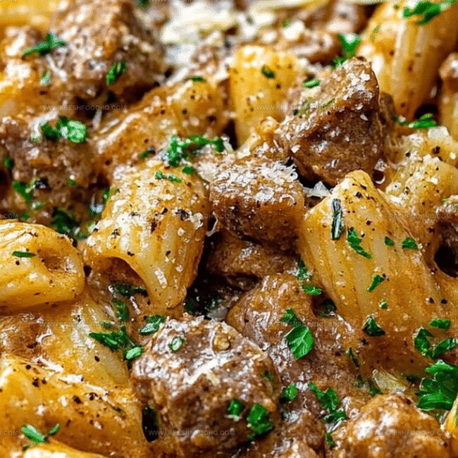 Savory beef pasta in a creamy garlic sauce promises a delightful culinary journey through rich, comforting flavors. Creamy textures and robust seasonings invite you to savor each delectable bite of this irresistible Italian-inspired meal.