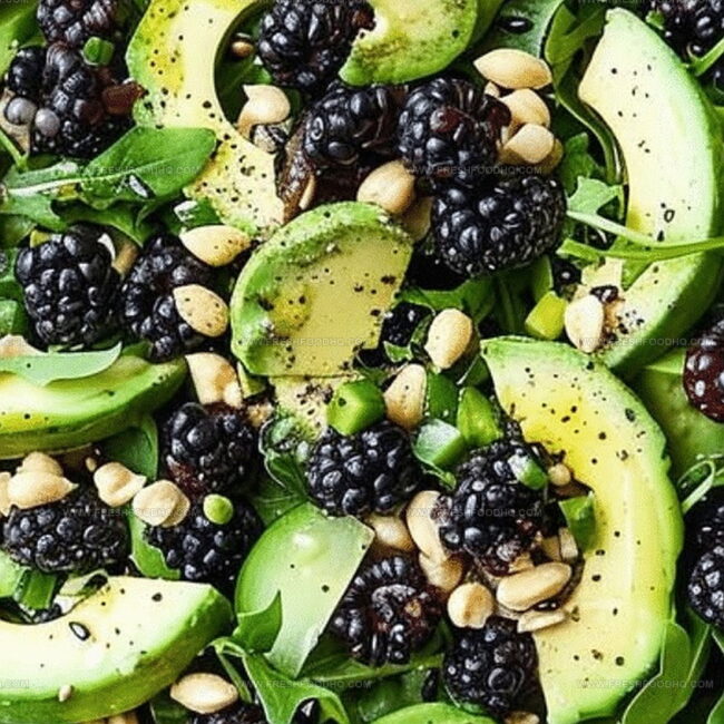 Delightful summer salad “Blackberry, Avocado, and Arugula” combines fresh ingredients with zesty flavors. Crisp arugula meets sweet blackberries and creamy avocado, offering you a refreshing culinary adventure perfect for warm days.
