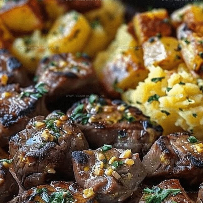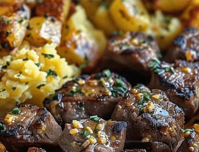 Hearty British Bangers and Steak Bites reveal a classic comfort meal that sings with savory satisfaction. Succulent sausages and tender beef morsels nestled alongside creamy, cheese-infused potatoes promise a delightful journey through traditional British cuisine you’ll crave again and again.