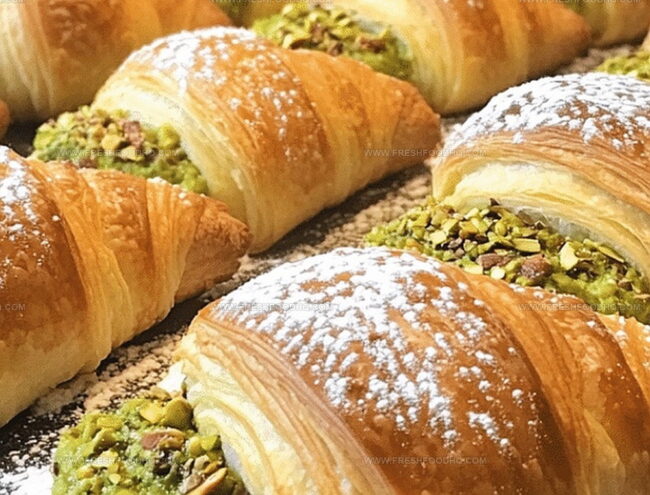 Buttery croissants embrace delightful pistachio ricotta almond cream, creating a French-inspired pastry masterpiece that whispers luxury in every flaky bite. Delicate layers meld rich nutty flavors, promising a sensational breakfast or elegant dessert you’ll savor with pure culinary bliss.