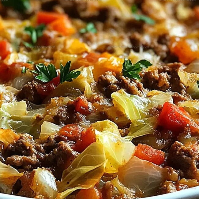 Hearty Cabbage Beef Bake brings comfort and warmth to family dinner tables across North America. Layers of savory ground beef, tender cabbage, and rich seasonings combine into a satisfying meal that promises delicious memories with each comforting bite.