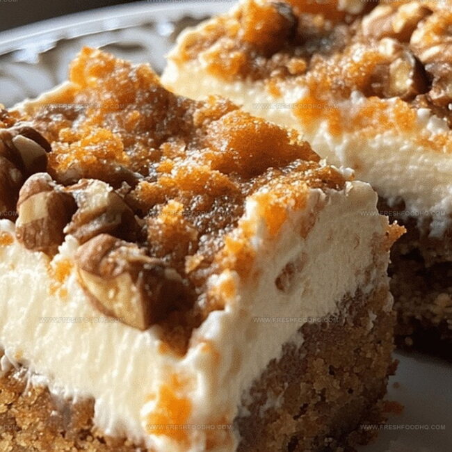 Indulgent carrot cake bars blend classic comfort with modern twist, delivering rich spiced flavors and creamy frosting. Moist cake layers packed with wholesome carrots and warm cinnamon promise pure dessert satisfaction you’ll crave again and again.