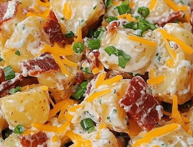 Creamy cheesy bacon ranch potato salad delivers classic summer cookout comfort with irresistible flavor combinations. Southern-style potatoes dressed in tangy ranch and crisp bacon promise a crowd-pleasing side dish that keeps everyone coming back for seconds.