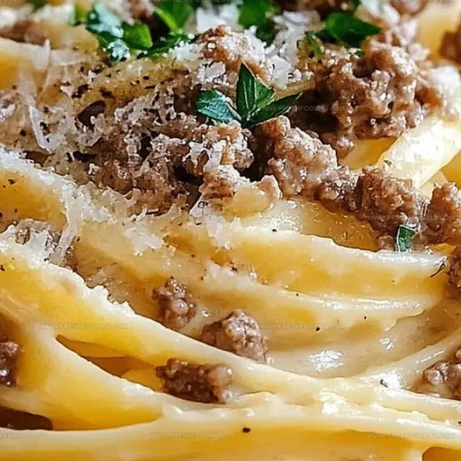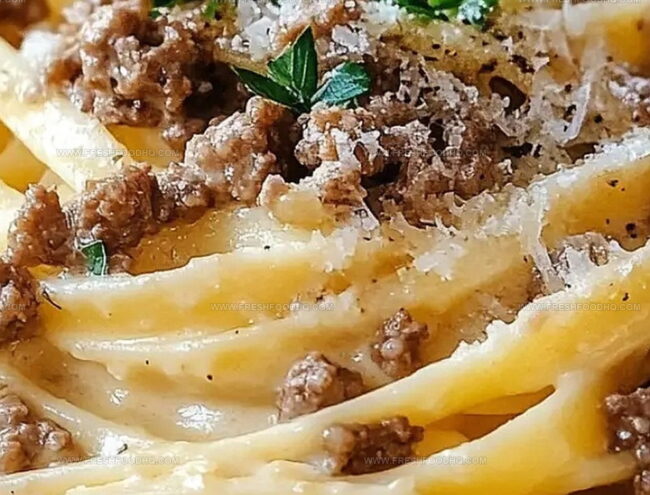 Creamy cheesy garlic butter linguine pasta with ground beef combines rich Italian flavors in one comforting dish. Hearty beef and silky linguine blend perfectly, promising a satisfying meal that invites you to savor each delicious bite.