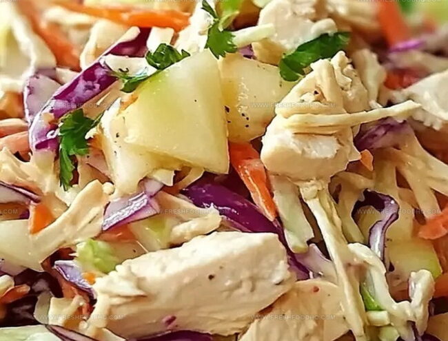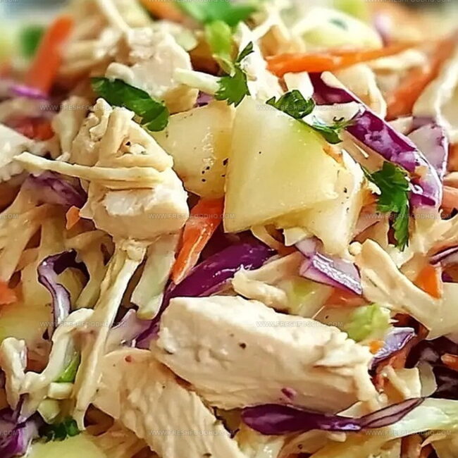 Crisp cabbage dances with juicy chicken and sweet apple slices in this refreshing Chicken Apple Coleslaw. Summer’s perfect picnic companion blends tangy mayo dressing with crunchy vegetables for a light, satisfying meal you’ll crave again and again.
