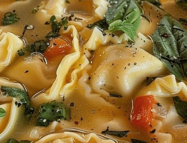 Hearty “Chicken Soup with Tortellini” delivers comforting Italian-inspired warmth straight from grandma’s kitchen. Cheesy pasta pillows and tender chicken swim in a rich, herb-infused broth that wraps you in pure culinary comfort.