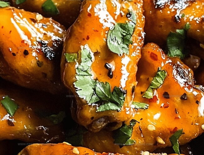 Sprinkle chopped green onions over the saucy wings for a fresh, zesty finish. Serve immediately while hot and crispy.
