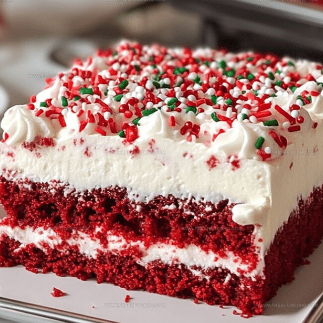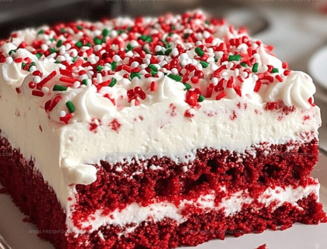 Red Velvet Christmas Poke Cake delivers festive cheer with its rich crimson layers and creamy white frosting. Indulgent holiday dessert promises merry bites of classic southern charm that sparkle with seasonal spirit.