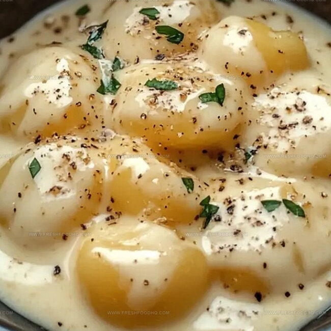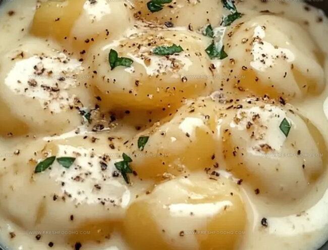 - Finish by dusting dried parsley across the top and optional parmesan cheese sprinkle. Serve immediately while sauce remains warm and potatoes retain their tender texture.