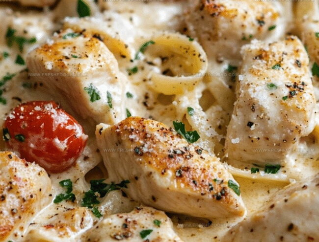 The combination of heavy cream, chicken broth, and Parmesan cheese creates a rich, velvety sauce that coats the pasta and chicken perfectly, giving it an incredibly smooth and luxurious texture.