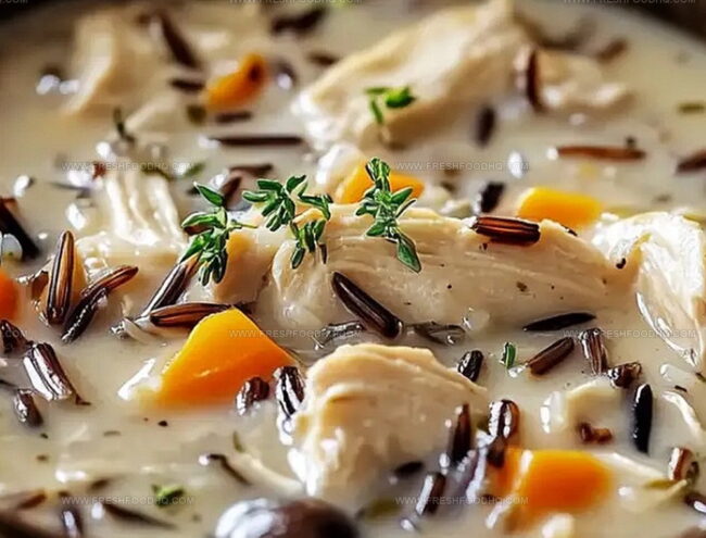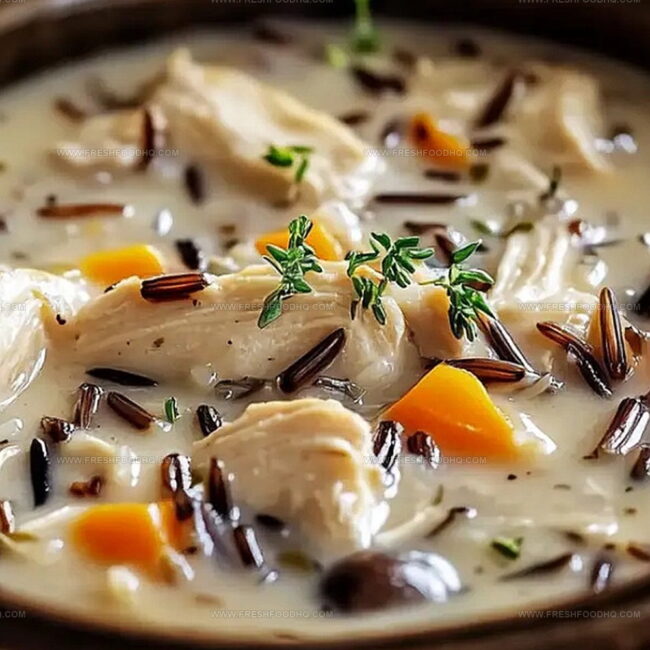 Comforting creamy mushroom chicken and wild rice soup delivers hearty woodland flavors in one luxurious bowl. Savory herbs and tender chicken blend with earthy mushrooms, promising warmth and satisfaction for hungry souls.