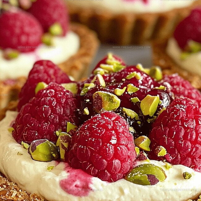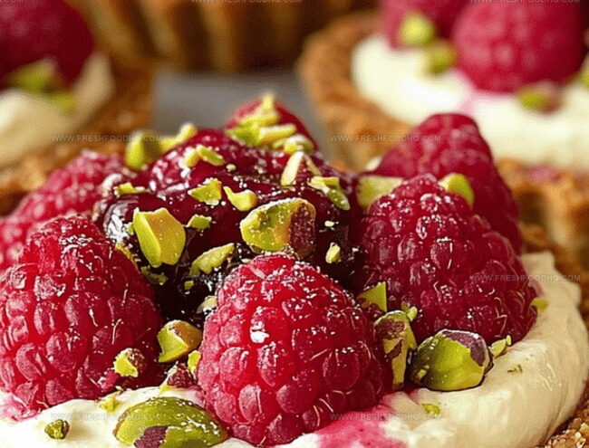 Crust Ingredients:Filling Ingredients:Topping Ingredients:How to Bake Elegant Pistachio Raspberry Tartlets