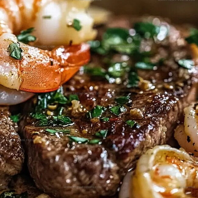 Butter-drenched shrimp nestle perfectly alongside perfectly seared beef, promising a restaurant-quality experience at home.