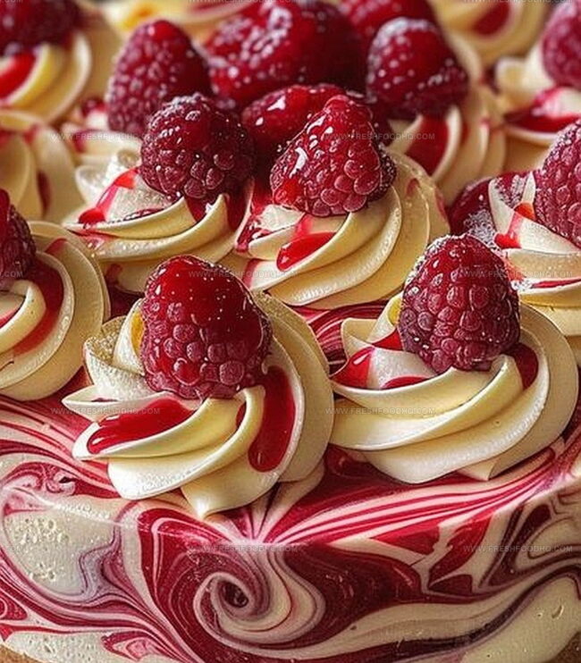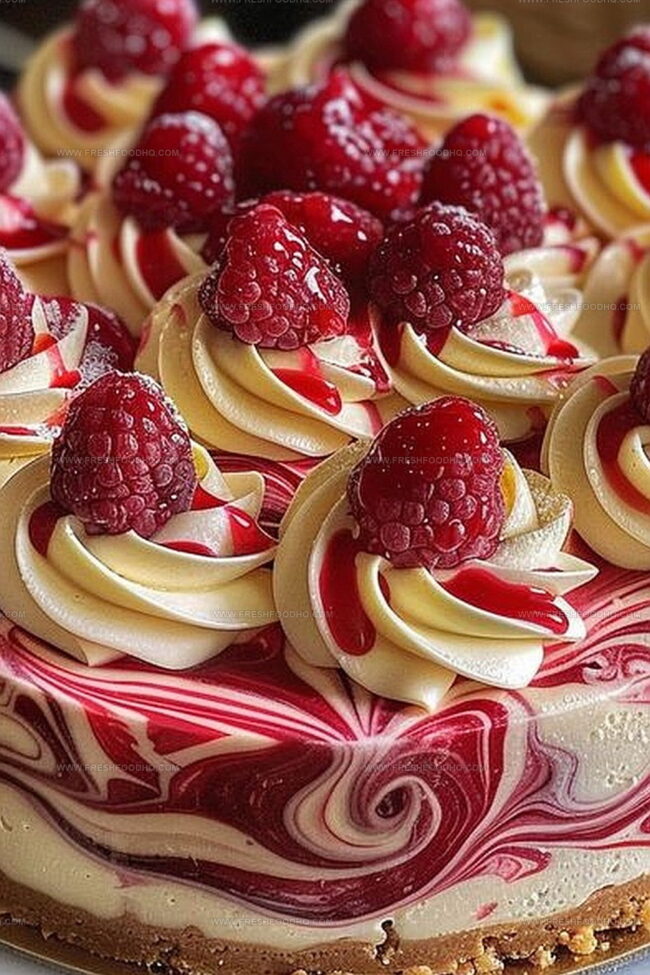 White chocolate raspberry swirl cheesecake beckons with its luxurious, creamy allure that promises pure indulgence.