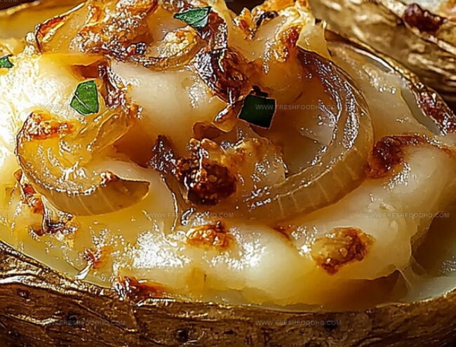 Rich, golden french onion baked potatoes deliver a mouthwatering twist on classic comfort food.