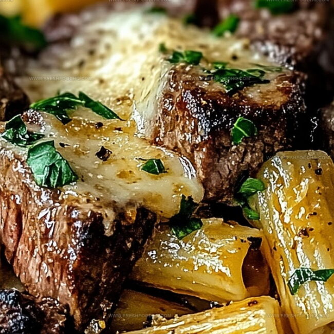 - Reintroduce rigatoni to the creamy sauce, ensuring each pasta tube is lavishly coated. Carefully nestle seared steak tips back into the skillet, drizzling with an additional pat of butter for extra richness.