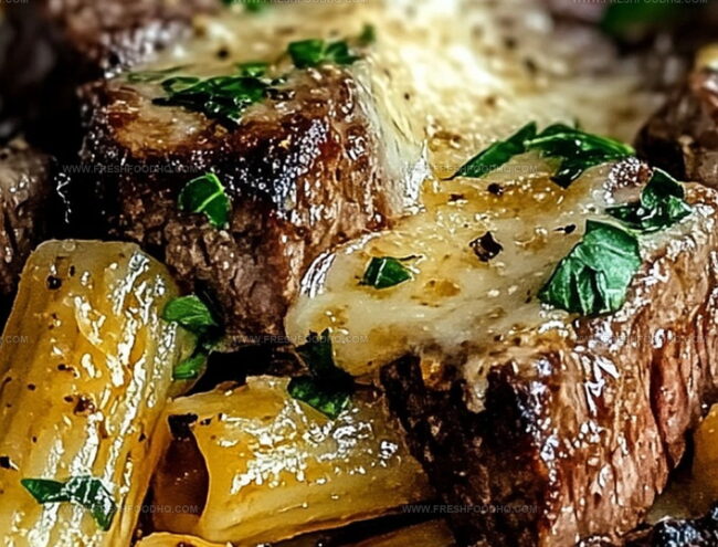 Sizzling garlic butter steak tips mingle with creamy rigatoni in this irresistible Italian-inspired comfort dish. Rich flavors and tender meat promise a luxurious dining experience that satisfies your deepest culinary cravings.