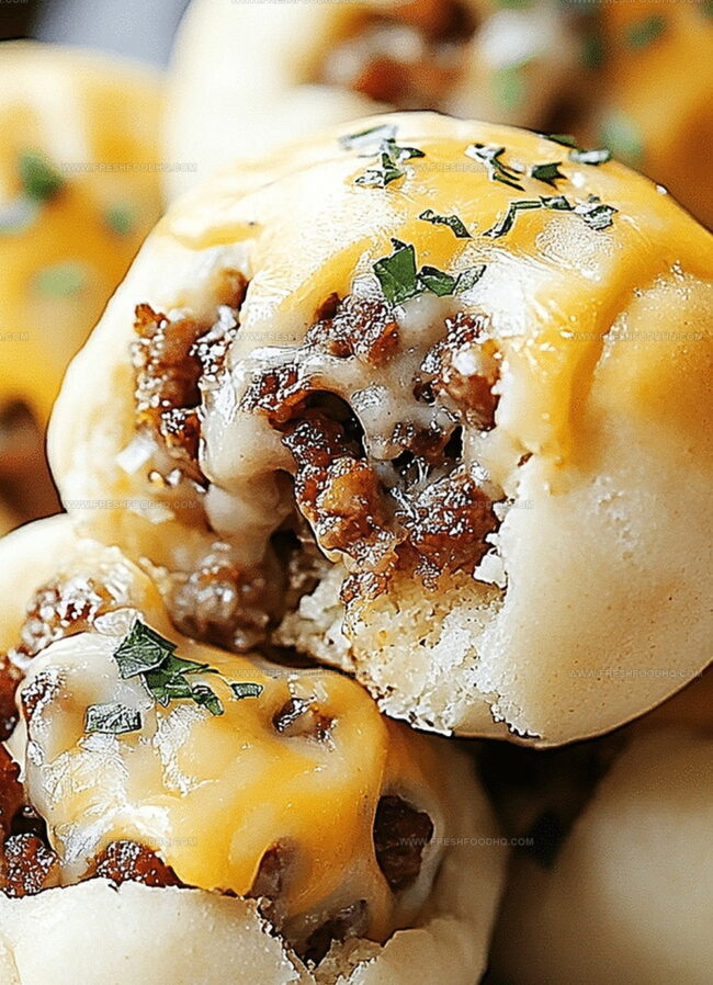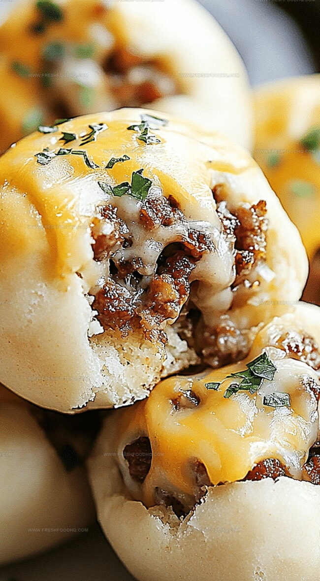 Delectable garlic parmesan cheeseburger bombs blend savory ground beef with melted cheese inside a golden-brown pastry shell. Crispy exterior and gooey interior make these appetizers a crowd-pleasing sensation you cannot resist.