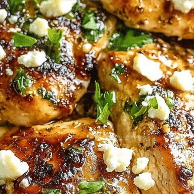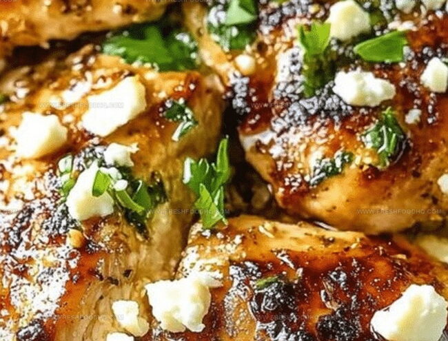 - Once chicken is perfectly grilled, immediately scatter crumbled feta cheese and freshly chopped parsley across the surface, allowing residual heat to slightly soften the cheese.
