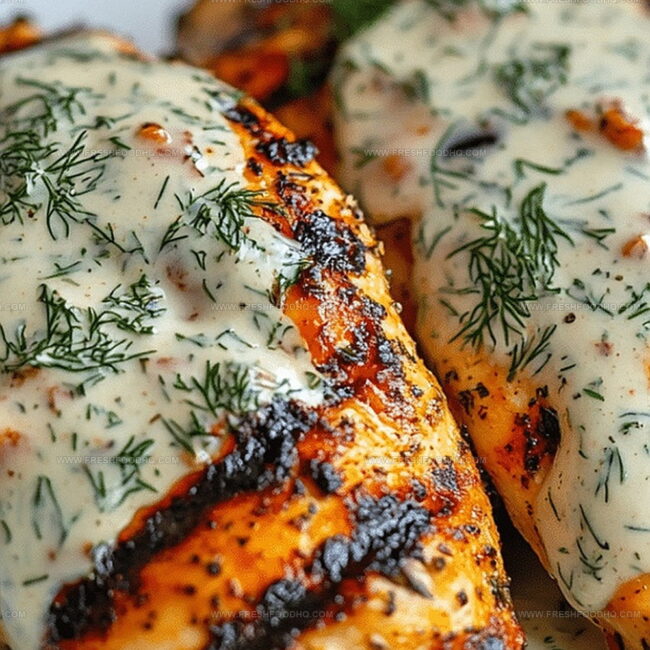 Transfer grilled chicken onto serving plates, generously spoon the creamy dill sauce over the top. Garnish with extra dill sprigs for a restaurant-worthy presentation.