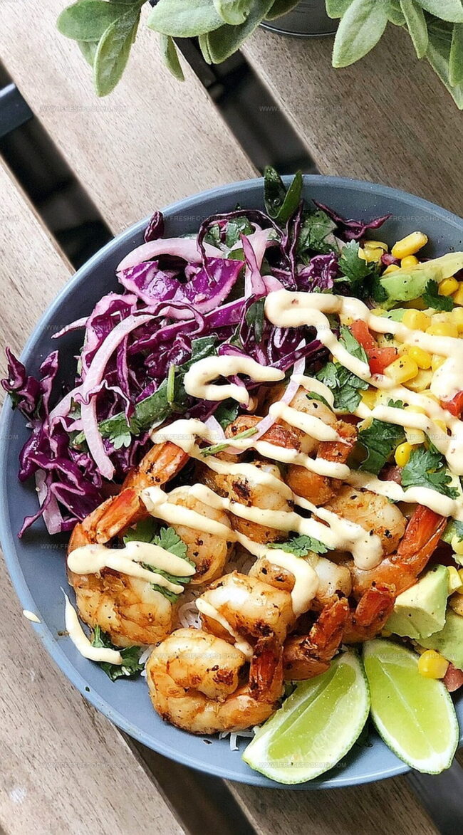 - Carefully fold grilled shrimp into the salad, ensuring even distribution.