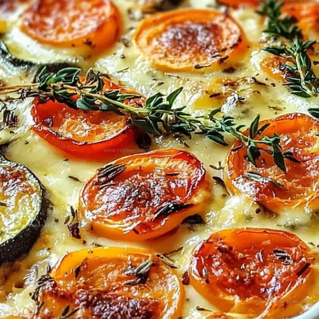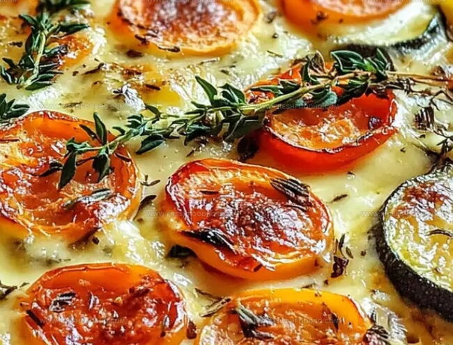 - Cut into four equal portions and serve warm, showcasing the vibrant vegetables and melted cheese.