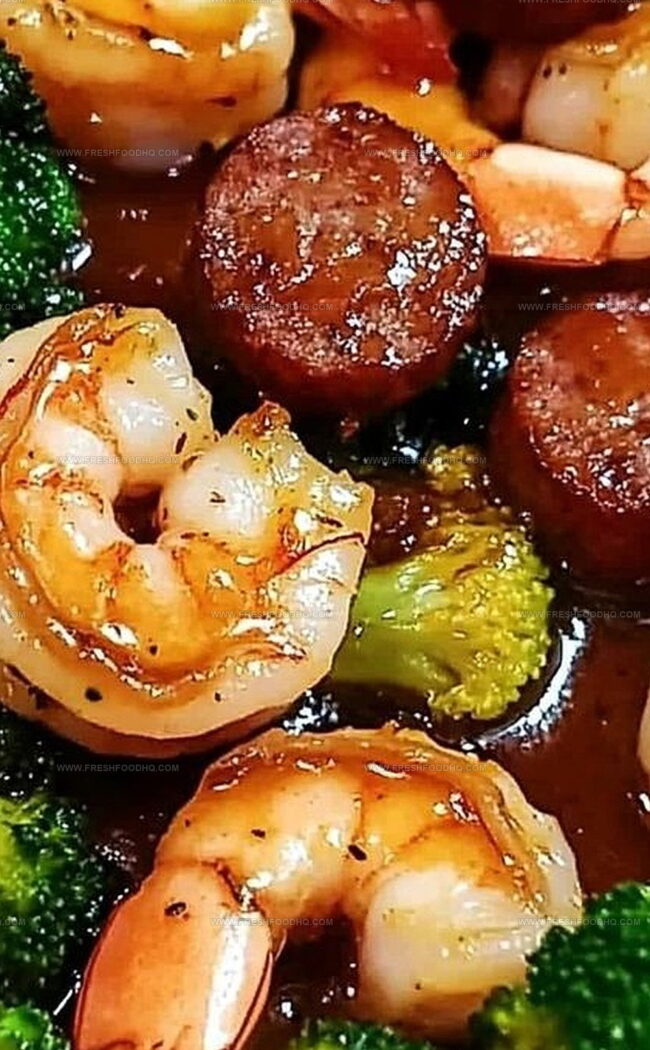 Sizzling honey garlic shrimp dances with juicy sausage and crisp broccoli in this quick, flavor-packed skillet sensation. Comfort meets excitement on your plate, promising a delightful meal you’ll crave again and again.