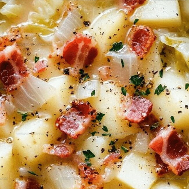 Hearty Irish Bacon, Cabbage, and Potato Soup celebrates classic comfort from Ireland’s culinary landscape. Creamy potatoes, smoky bacon, and tender cabbage meld together, inviting you to savor each spoonful of rich, warming goodness.