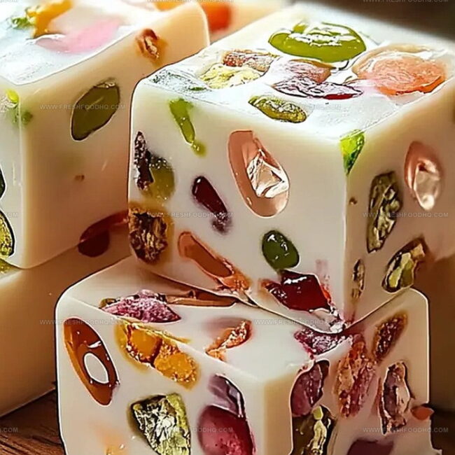 Sweet homemade jelly nougat candy delights taste buds with its perfect blend of chewy texture and fruity flavor. Crafted with care, this simple recipe brings pure confectionery joy to your kitchen.