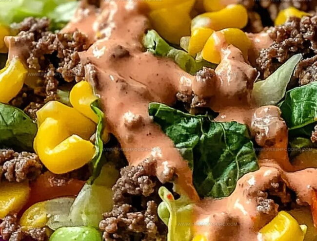 Keto big mac salad brings classic burger flavors to a low-carb plate without losing an ounce of deliciousness. Each crisp bite delivers creamy dressing, savory beef, and crunchy pickles that satisfy your fast-food cravings while keeping carbs in check.