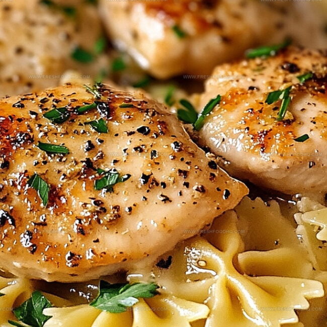 Zesty lemon garlic chicken with creamy bowtie pasta brings Mediterranean sunshine to dinner tables. Rich herbed sauce and tender chicken create a comforting meal you’ll crave again and again.