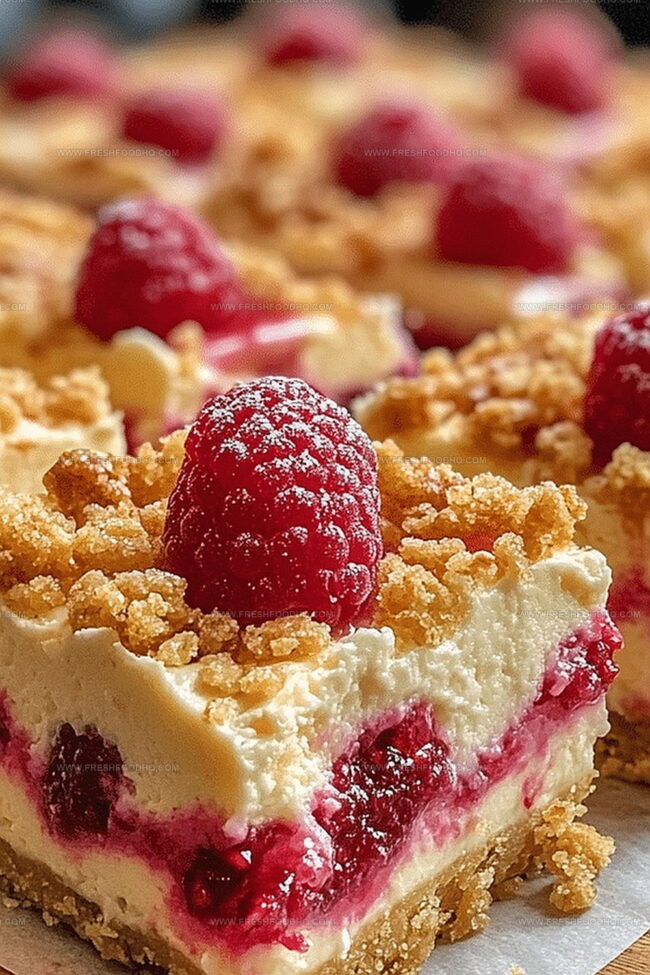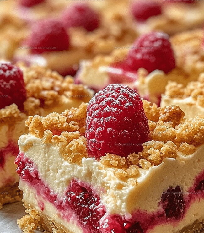 Crisp lemon zest mingles with velvety raspberry swirls in these decadent cheesecake crunch bars that promise pure dessert magic.