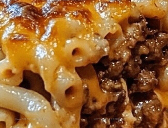 Creamy pasta layers mingle with savory ground beef, creating a delightful twist on classic comfort food.