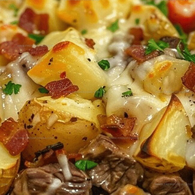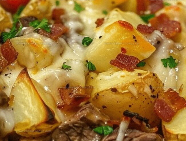 Hearty crockpot loaded steak and potato bake delivers comfort in one delicious dish, blending tender meat with creamy potatoes. Cheese, bacon, and green onions create a mouthwatering combination that makes you crave seconds of this satisfying meal.