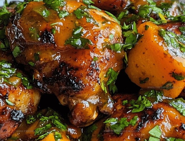 Transfer the succulent chicken to serving plates. The final dish should be glistening with a rich, caramelized sauce that promises an explosion of tropical and savory notes in every bite.