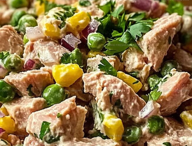 - Gradually drizzle the prepared dressing over the tuna mixture, gently folding ingredients to achieve uniform coating and flavor distribution.